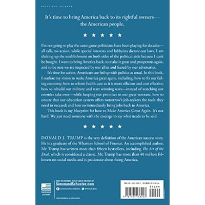 About the Author Donald J. Trump is the very definition of the American success story, continually setting the standards of excellence while expanding his interests in real estate, sports, and entertainment. He is a graduate of the Wharton School of Finance. An accomplished author, Mr. Trump has authored over fifteen bestsellers and his first book, The Art of the Deal, is considered a business classic and one of the most successful business books of all time. Mr. Trump has over eight million followers on social media and is a frequent guest across a variety of media platforms. Read more Excerpt. Reprinted by permission. All rights reserved. Crippled America PREFACE YOU GOTTA BELIEVE PEOPLE SAY THAT I have self-confidence. Who knows? When I began speaking out, I was a realist. I knew the relentless and incompetent naysayers of the status quo would anxiously line up against me, and they have: The politicians who talk a great game in campaignsand play like total losers when they try to actually govern because they cant govern; they dont know how to govern. The lobbyists and special interests with their hands in our pockets on behalf of their clients or others. The members of the media who are so far lost when it comes to being fair that they have no concept of the difference between fact and opinion. The illegal immigrants who have taken jobs that should go to people here legally, while over 20 percent of Americans are currently unemployed or underemployed. Believe me, theyre all over the place. I see them. I talk to them. I hug them. I hold them. They are all over the place. Congress, which has been deadlocked for years and virtually unable to deal with any of our most pressing domestic problems, or even the most basic ones, such as passing a budget. Think of it: a little thing like passing the budget. They dont even have a clue. Meanwhile, the bedrock of this countrythe middle classand those 45 million Americans stuck in poverty have seen their incomes decline over the past 20 years. Understandably, their disenchantment and frustration at whats happening grows every day, and it gets worse and worse and worse. And even our lawyers and judges, the reflective wise men, have been stepping all over the US Constitution, the bulwark of our democracy. They have recklessly appointed themselves to be policy makers, because our actual elected officials are paralyzed by partisanship. They cant move; they cant act. They are totally impotent. As for the presidency and the executive branch, the incompetence is beyond belief. As I write this, Russian president Vladimir Putin is totally outmaneuvering our president by putting together a coalition in Syria that will make Putin the only effective leader in the world. He and his alliesmost notably Iranhave positioned themselves exactly where President Obama and our military have failed miserably for years. They are total failures. They are not leaders. We are no longer a leader. Putin has become the leader, and its an embarassment to our country. Weve wasted literally trillions of dollars in the Middle East, with virtually nothing to show for it except for alienating our best ally, Israel. To make matters worse, weve negotiated a worthless and costly nuclear treaty with Iran (now Russias best friend) on the supposition that it will lead to greater harmony and world peace, which it wont. It will lead to just the opposite. The idea of American Greatness, of our country as the leader of the free and unfree world, has vanished. Despite all of these challengesand actually because of the challengesI decided to do something about it. I couldnt stand to see what was happening to our great country. This mess calls for leadership in the worst way. It needs someone with common sense and business acumen, someone who can truly lead America back to what has made us great in the past. We need someone with a proven track record in business who understands greatness, someone who can rally us to the standard of excellence we once epitomized and explain what needs to be done. When I started speaking out, I had no idea what the reaction would be. I know Im a great builder, Ive built buildings all over the world. Ive had tremendous success. But I hadnt fully exposed my political thoughts and ideas to restore Americas greatness. I also knew that the Trump brand is one of the worlds great icons of quality and excellence. Everybody talks about it. Everybody knows about it. Its very very special. Im very proud of it. Our buildings and resorts now stand very proudly (and beautifully) all over the United States and in many other countries. I started with the issue of illegal immigration, and proposed building a major wall that would be very high and completely impervious to the flood of immigrants who we dont want or need here illegally. We love people coming in, but not when its done illegally. Suddenly, Americans started to wake up to what was going on with regard to illegal immigration. Despite the large number of candidates who were running for the Republican nomination, what I was saying started to really hit home with people, and everybody picked it up and they picked it up gladly. I started drawing crowds so large that we had to move our rallies into football stadiums and convention centers. The first national debate drew 24million viewers, which set a record for cable television. Despite some of the ridiculous, antagonistic questionsor maybe because of themI fought back as I always do and began to explain my vision. As a result, most people thought I won the debate. People were applauding. All of a sudden, people who had never cared about elections or never voted were rushing to our rallies. The rallies became massive. The crowds were unbelievable. The enthusiasm was based on pure love and love of what we were doing. The media, the politicians, and the so-called leaders of our country reacted in horror. But I persevered and went directly to the people, because I dont need anyo